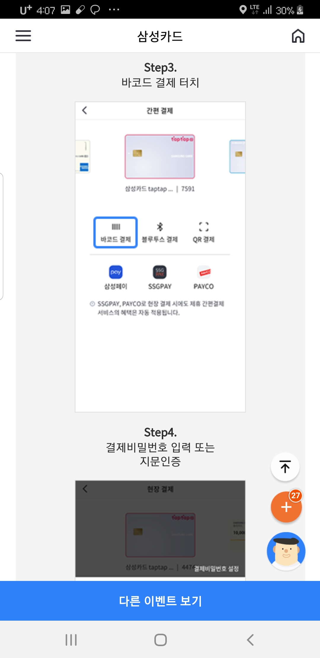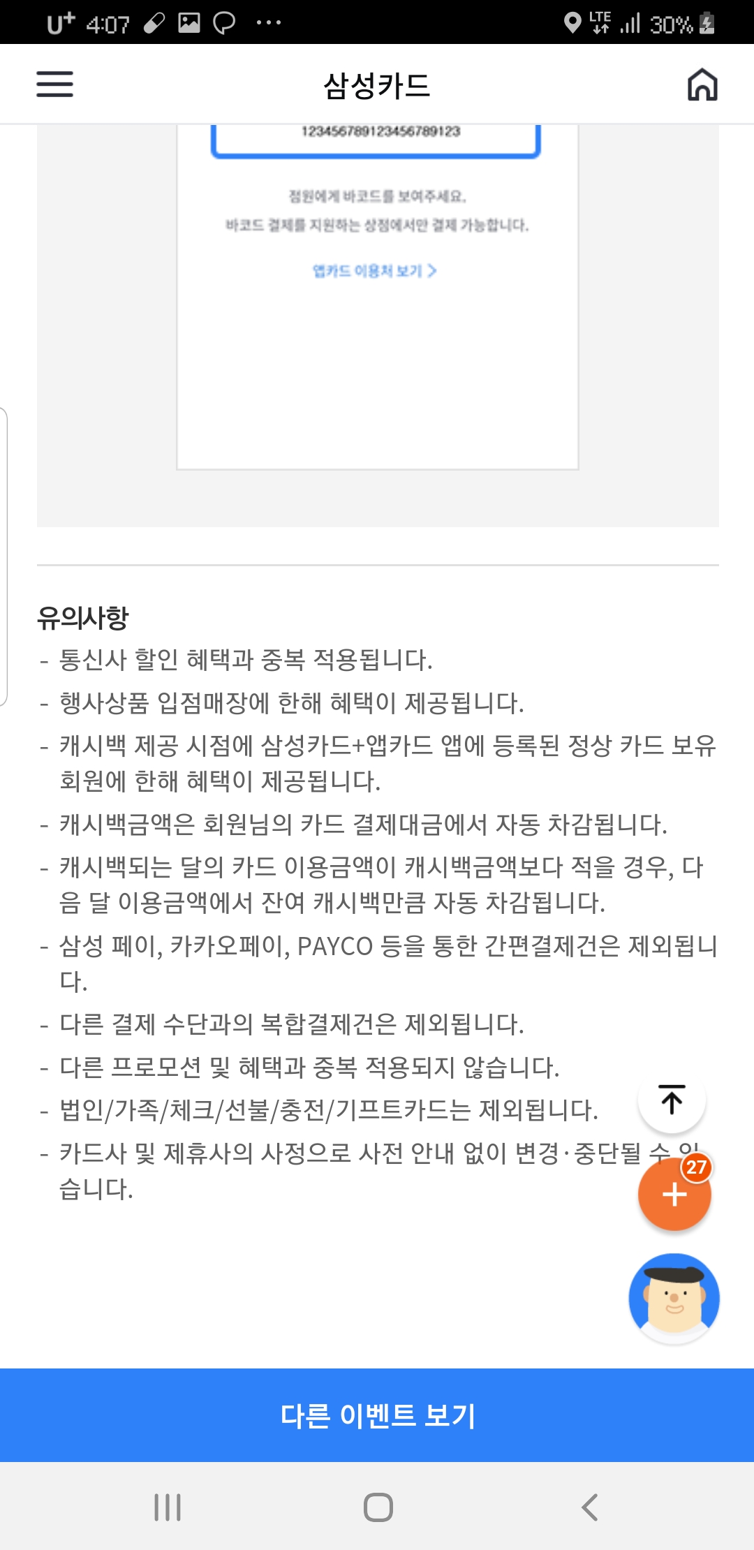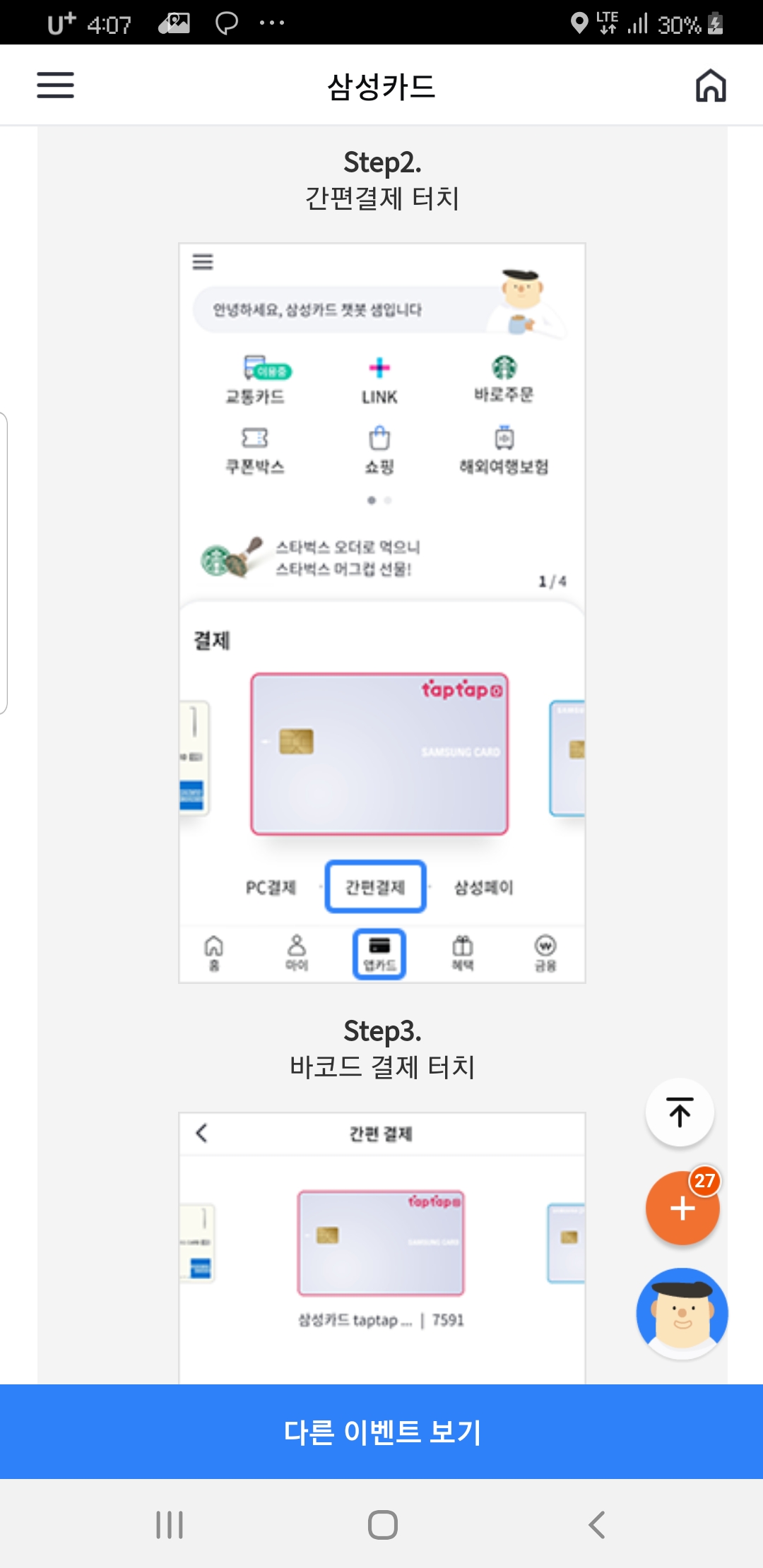 요게 정말 조건도 없고, 선착순도 아니고, 추첨도 아닌 이벤트라 삼성카드 보유자는 무조건 해야하는 이벤트 ㅋ
