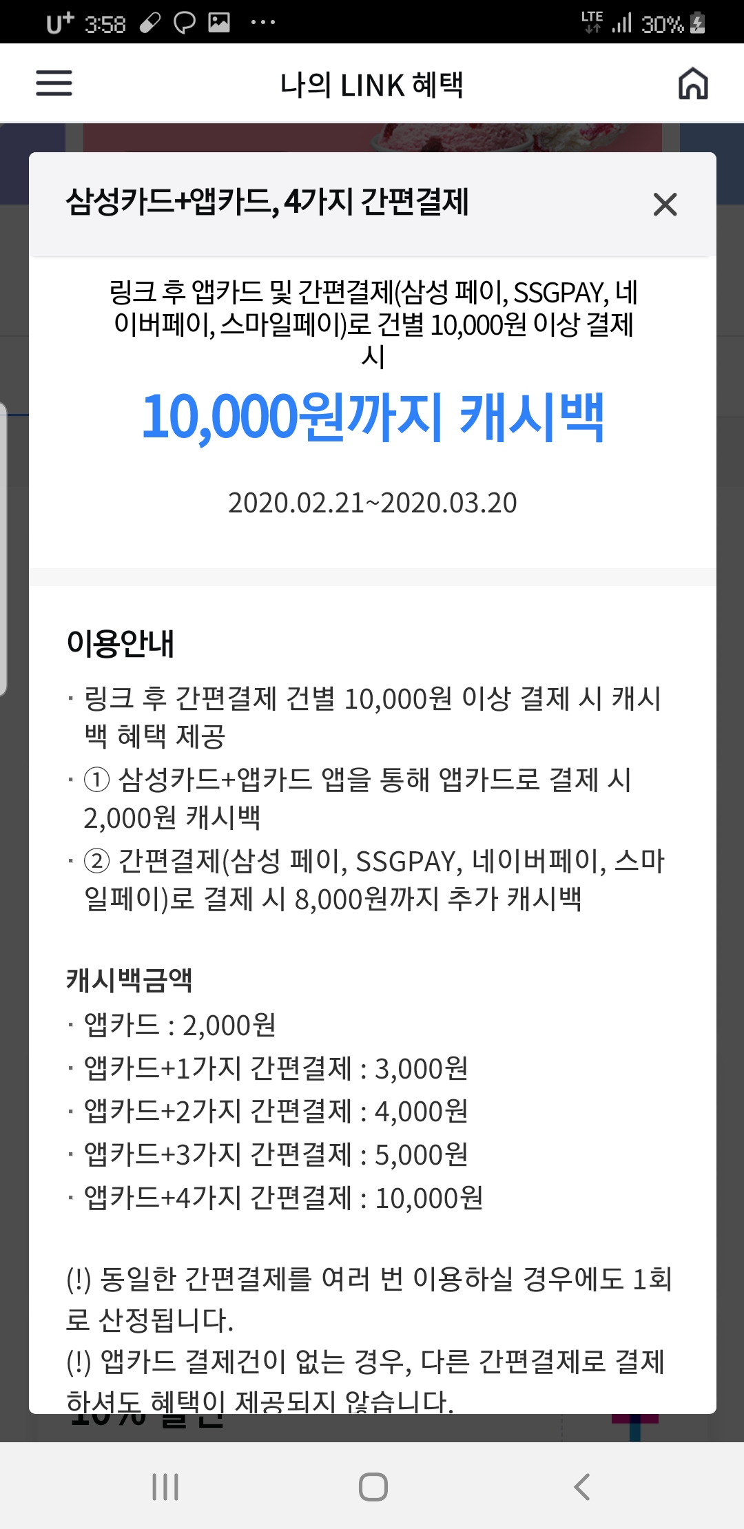 여러 간편결제로 삼성카드 결제시 최대 만원까지 캐시백이 되니 참고.