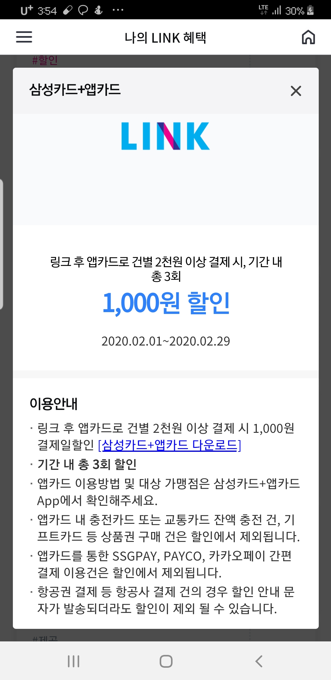 앱카드로 결제시 총 4회 1,000원 할인이나,
