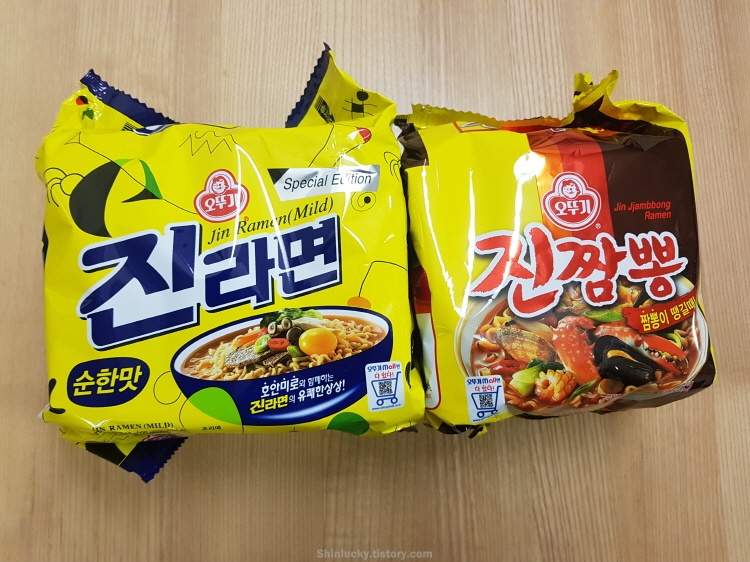 진라면 한묶음(x5), 진짬뽕 한묶음(x4), 진라면 컵라면(소), 진짬뽕 컵라면(소)