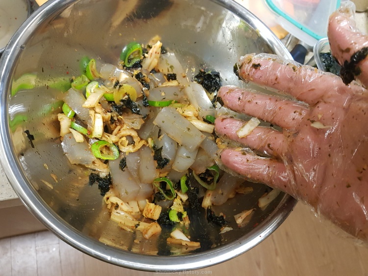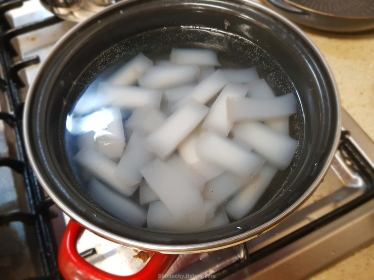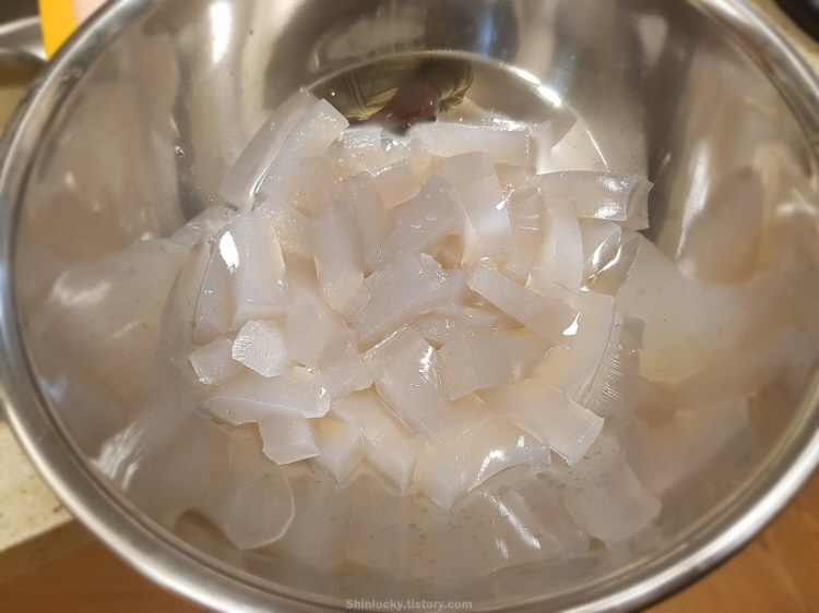 묵을 뜨끈하게 데워서 말랑말랑하게 만든뒤에,