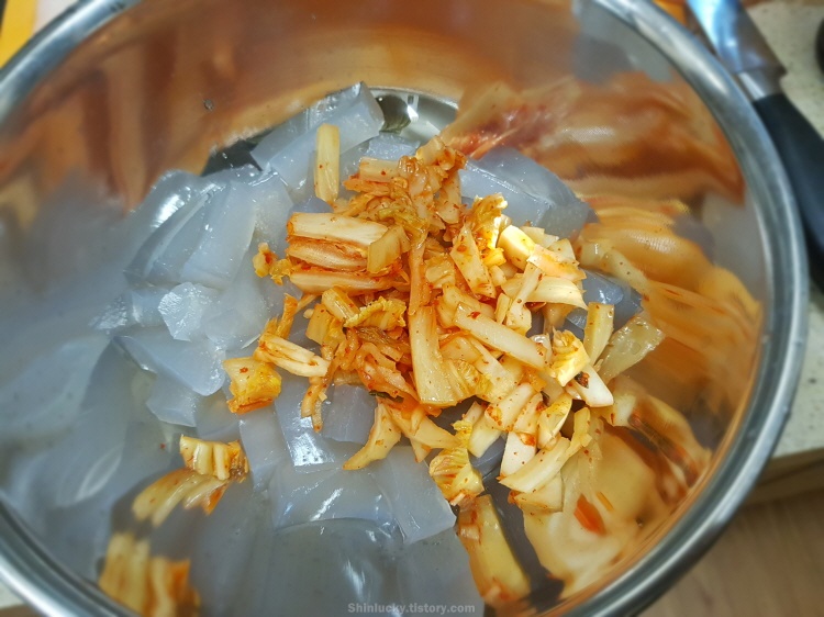 어떻게 먹을까 냉장고에 방치되어 있다가, 이날 김치랑 무쳐서 먹기로 했네요 ㅎㅎ.