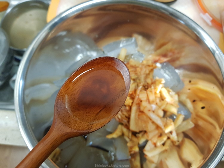 필수 : 묵, 김치, 참기름, 간장, 설탕