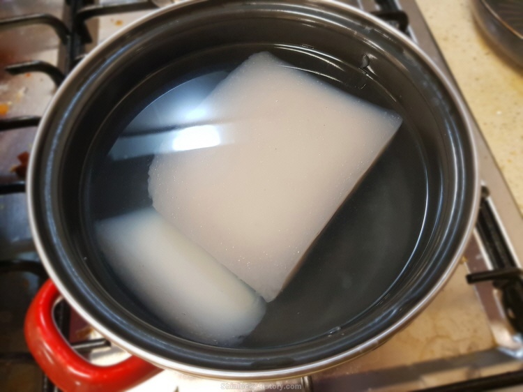 예전 큰집에서 하얀 묵을 한덩이 얻어왔습니다.
