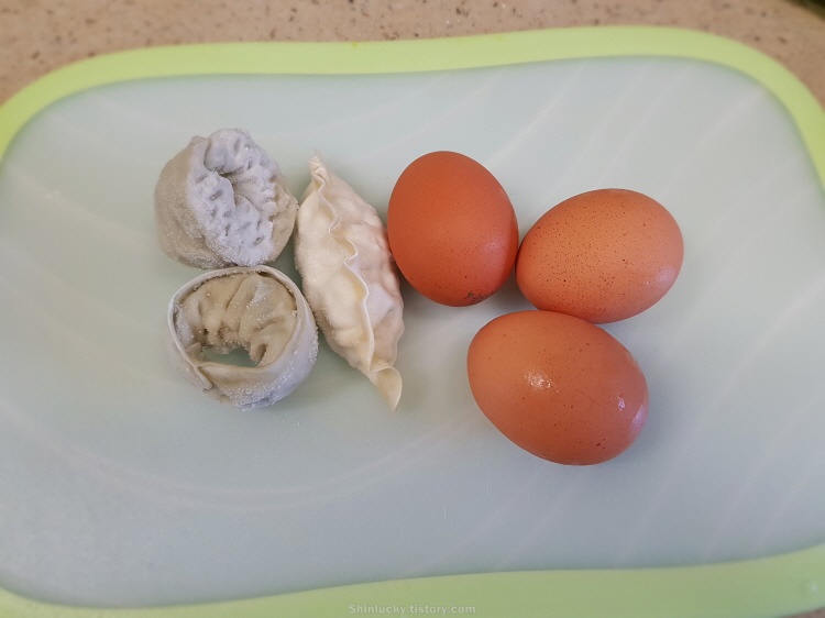 냉동만두, 달걀, 소금, 후추
