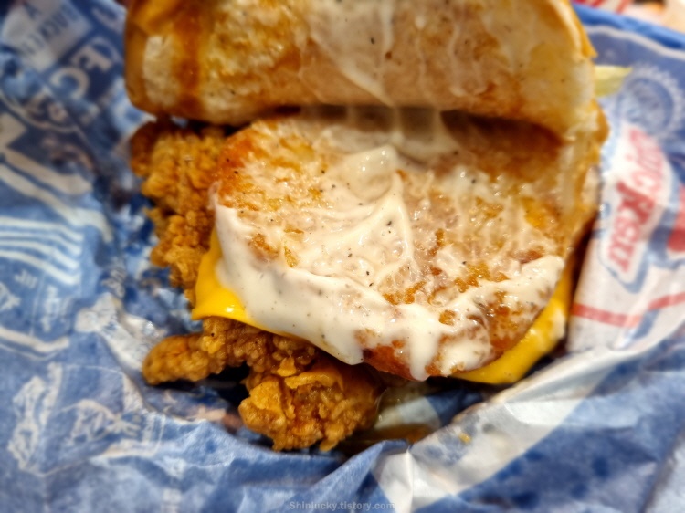 확실히 예전의 켄터키치킨버거에 비해 소스나 치즈, 해시브라운이 추가되어 풍성해보입니다.