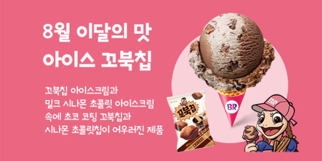 이번 2021년 베스킨라비슨 8월 이달의 맛은 아이스꼬북칩입니다~