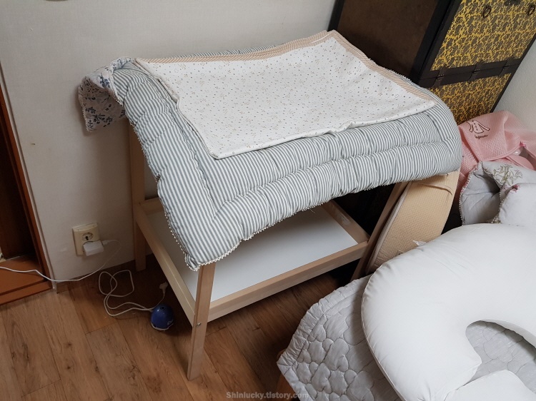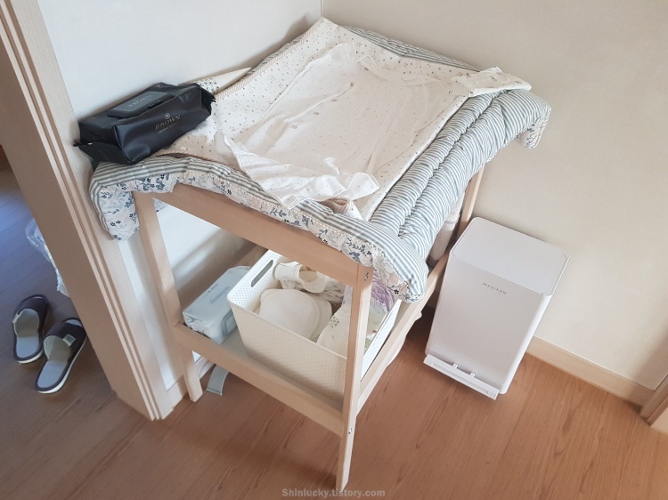 그냥 나무로된 정리함 같은 느낌인데, 위에다가 아이 기저귀를 교환하는 간단한 기능!