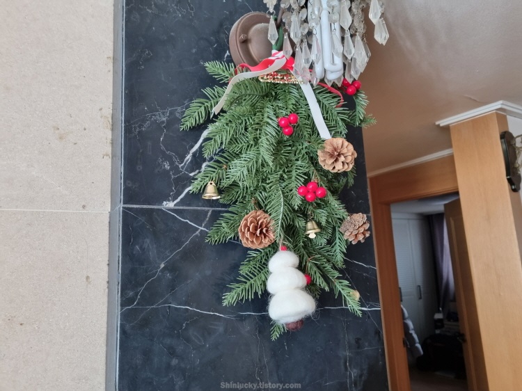 이번 크리스마스 당일에는 조카와 함께 크리스마스 스와그를 만들어 봤습니다.