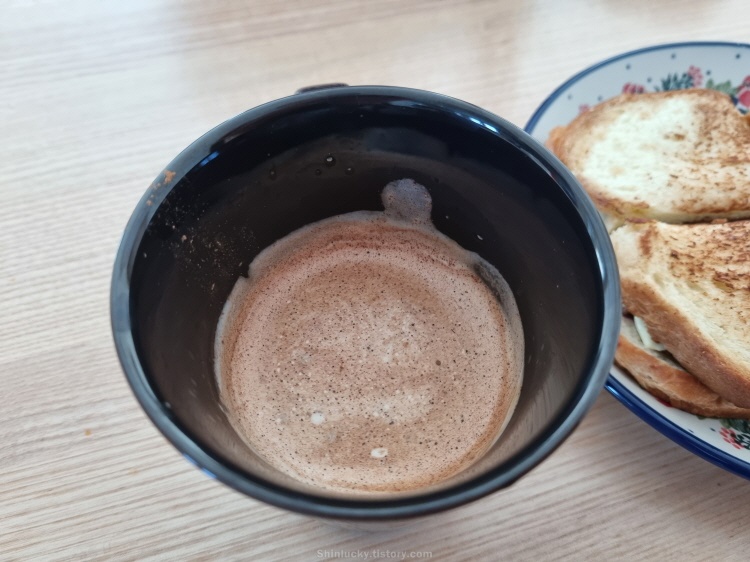 커피랑 길거리토스트와 점심으로 집에서 먹고, 공원에 산책을 갔습니다!