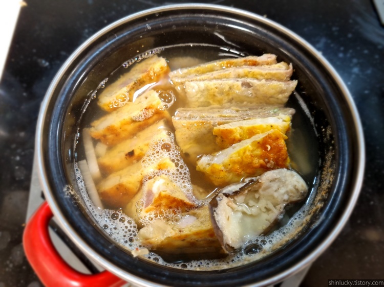예전에는 전을 꽤 많이 모아서 전골냄비에 거창하게 해먹었는데,