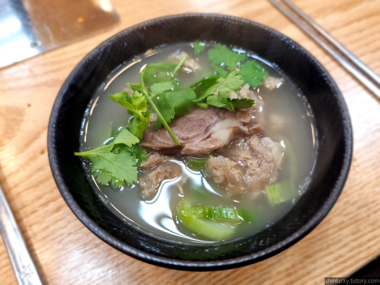 양고기로 만든 갈비탕 정도로 생각하면 되는데, 국물이 진짜 뜨끈하고 고기도 정말 잘 삶아져있더라구요.