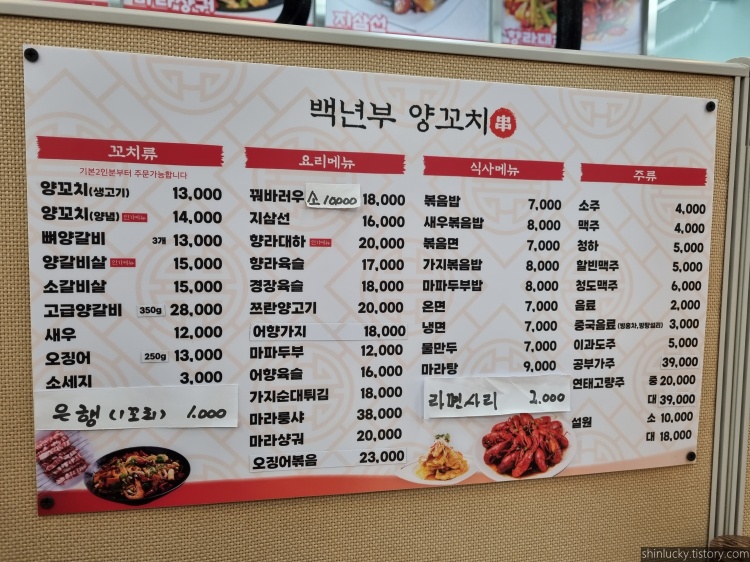 백년부 양꼬치 안양점으로 비산사거리 쪽에 있는 곳이지요~