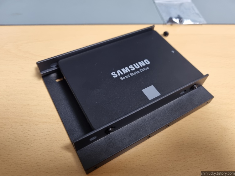 >> 구형 PC라 SSD를 장착할 여유 공간이나 슬롯이 없더라구요. 기존에 HDD를 제거후 가이드를 사서 여기에 SSD를 장착하여 조립! 사실 이게 필요했던건 SSD 부착할 나사가 없어서... 겸사겸사 구입 ㅠ.ㅜ