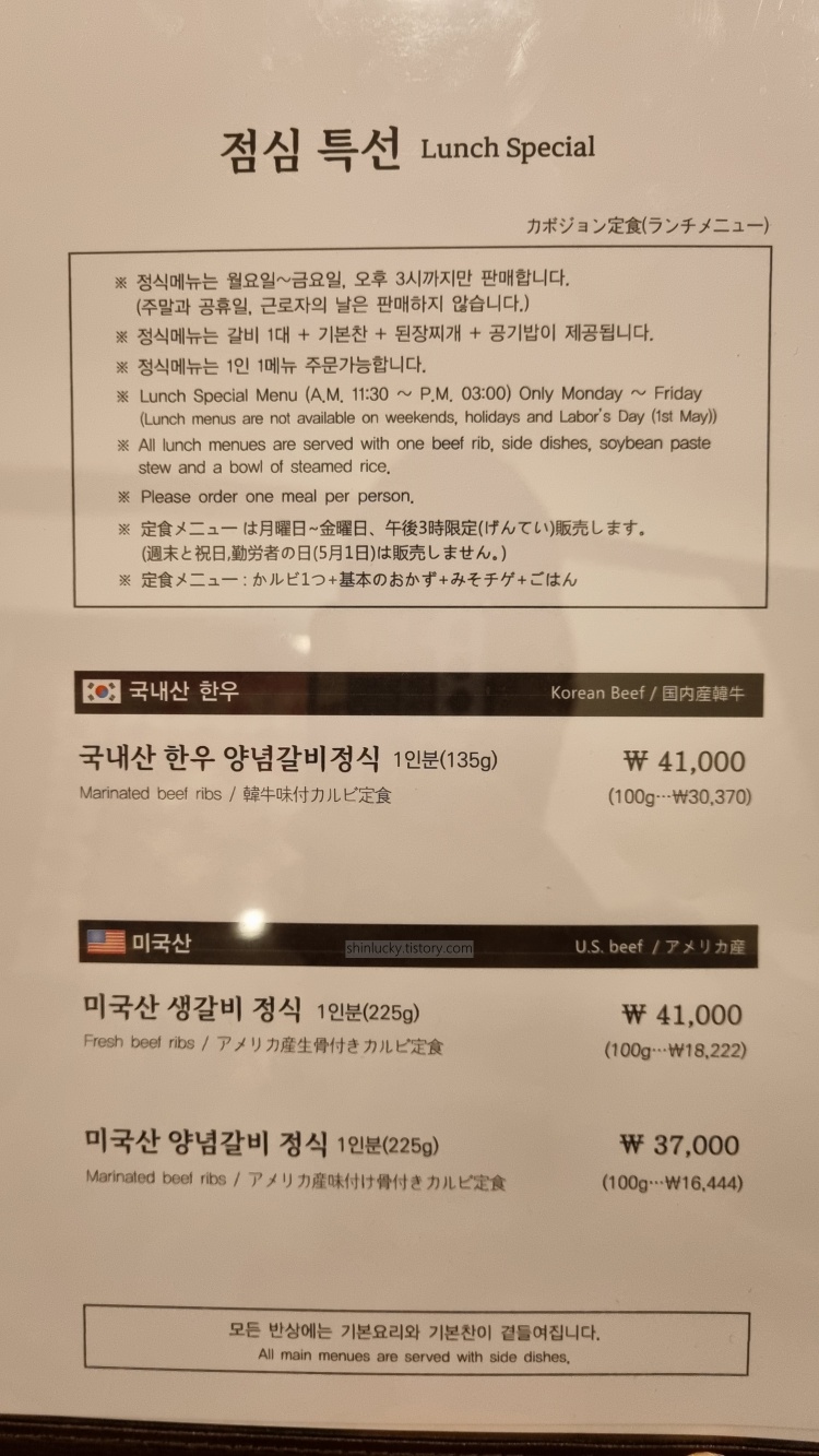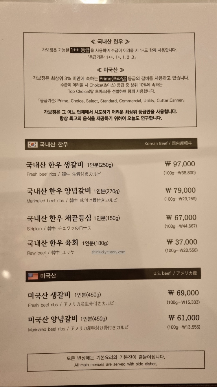 물론.... 1인분에 국내산 한우 생갈비(250g)의 가격이 97,000원인지는 몰랐지만 말이죠 ㅋ