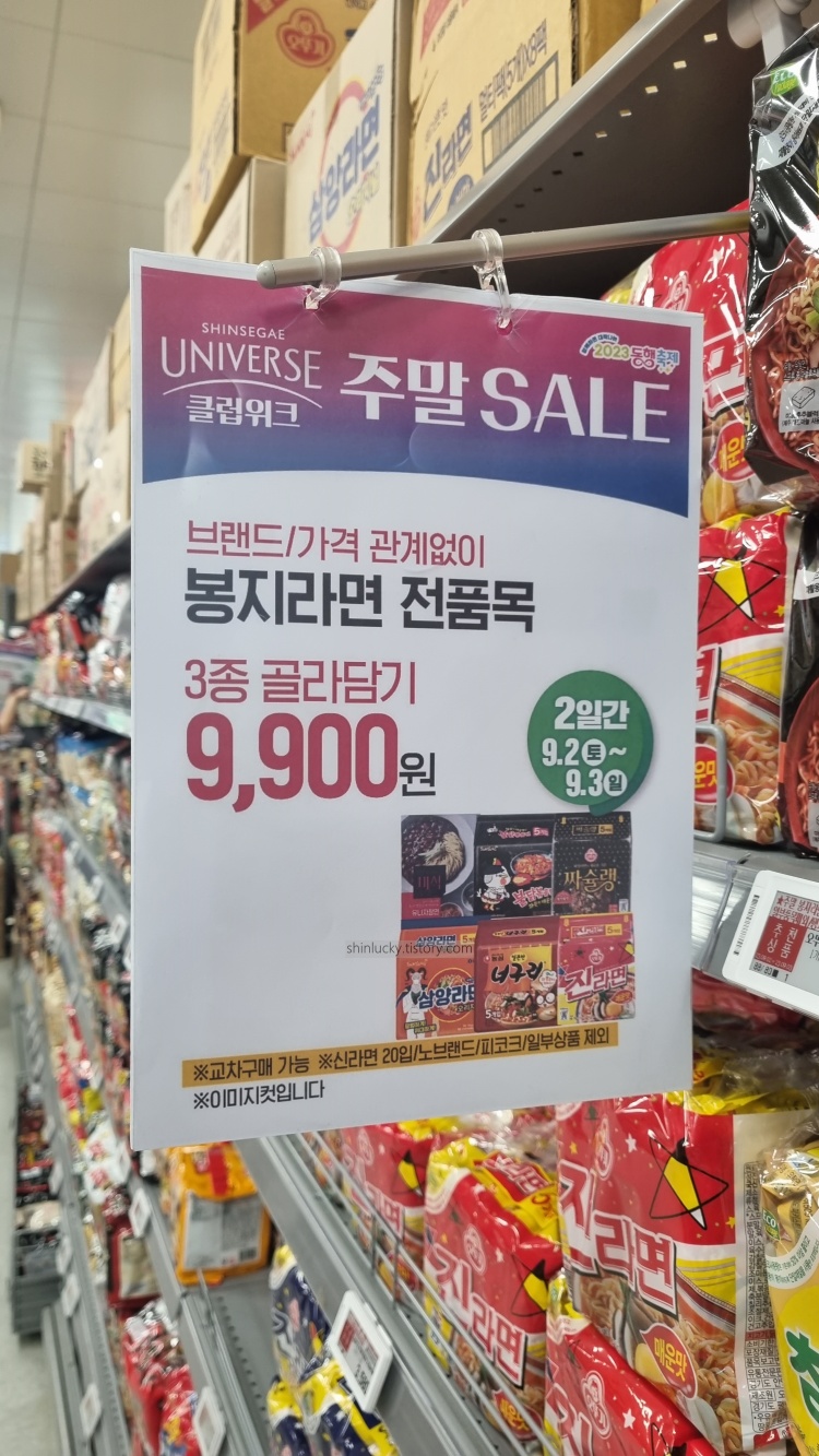 이번주 이마트 신세계유니버스! 라면 아무거나 3팩 9,900원!!