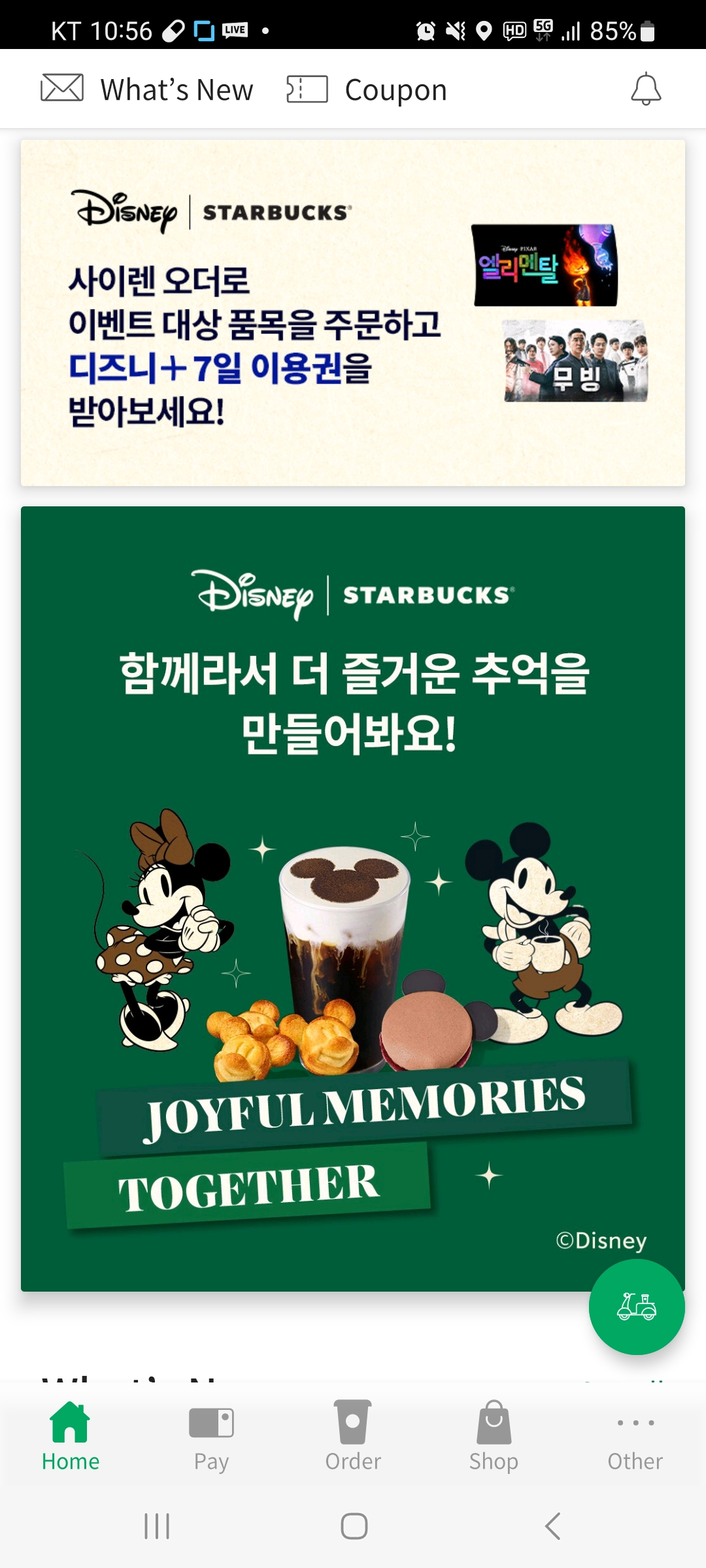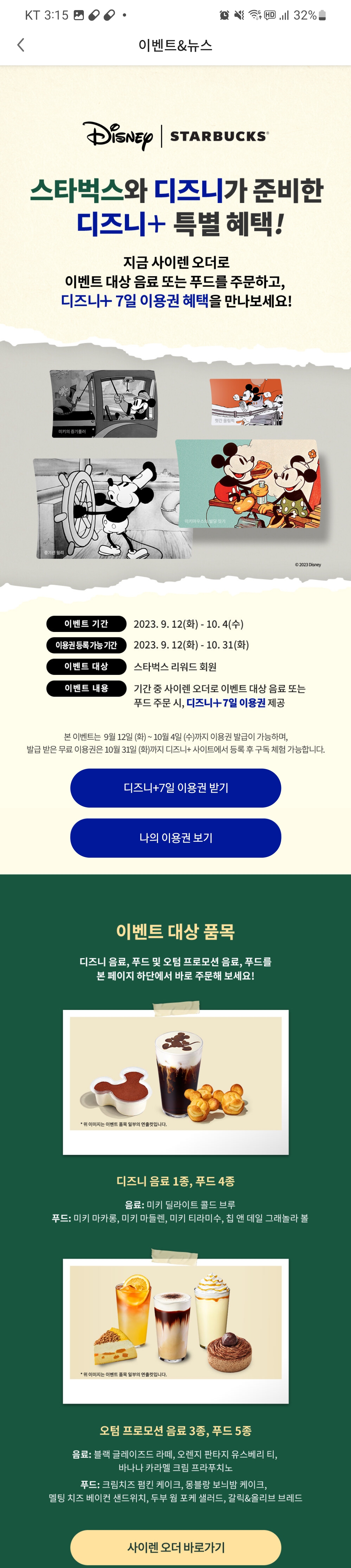 > 스타벅스 x 디즈니 콜라보 진행중! 콜라보 상품 구매시 7일 무료이용권을 받을 수 있습니다.