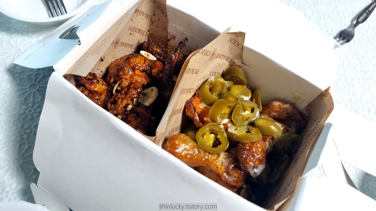 지난번에 밥하기 싫어서 가족들이랑 치킨을 사먹기로 했는데 간만에 푸라닭에서 주문을 해봤습니다.