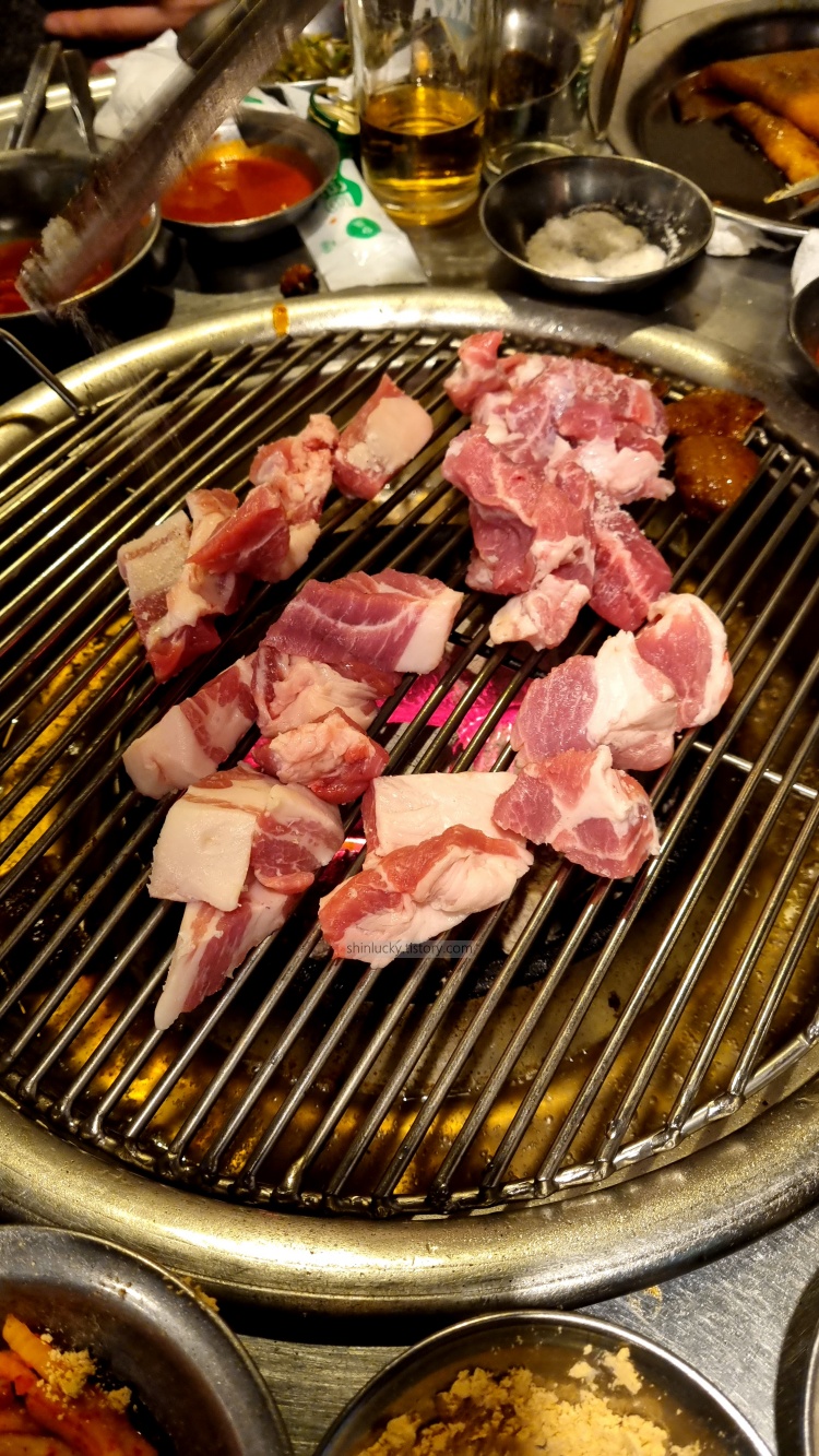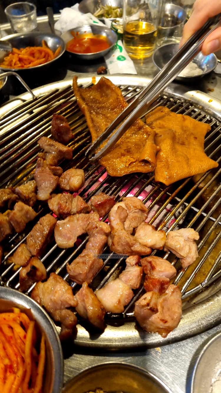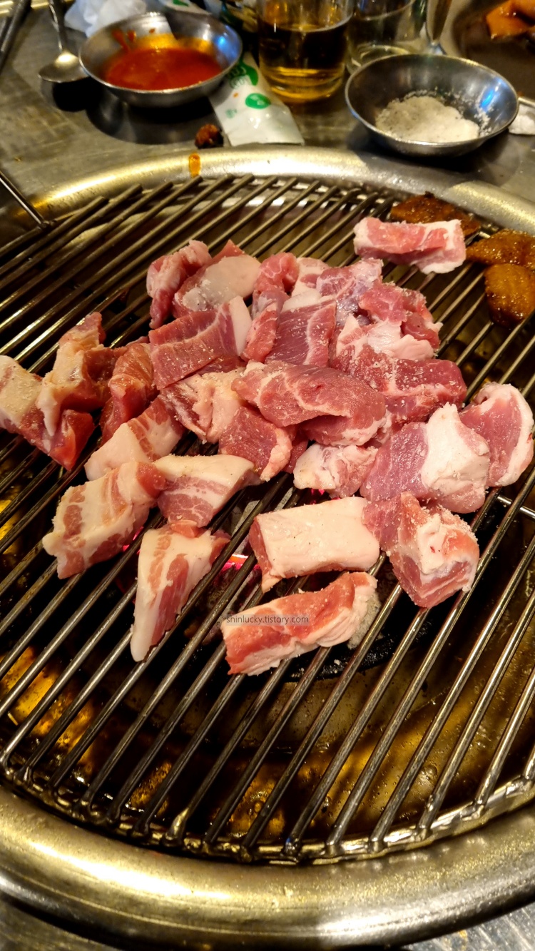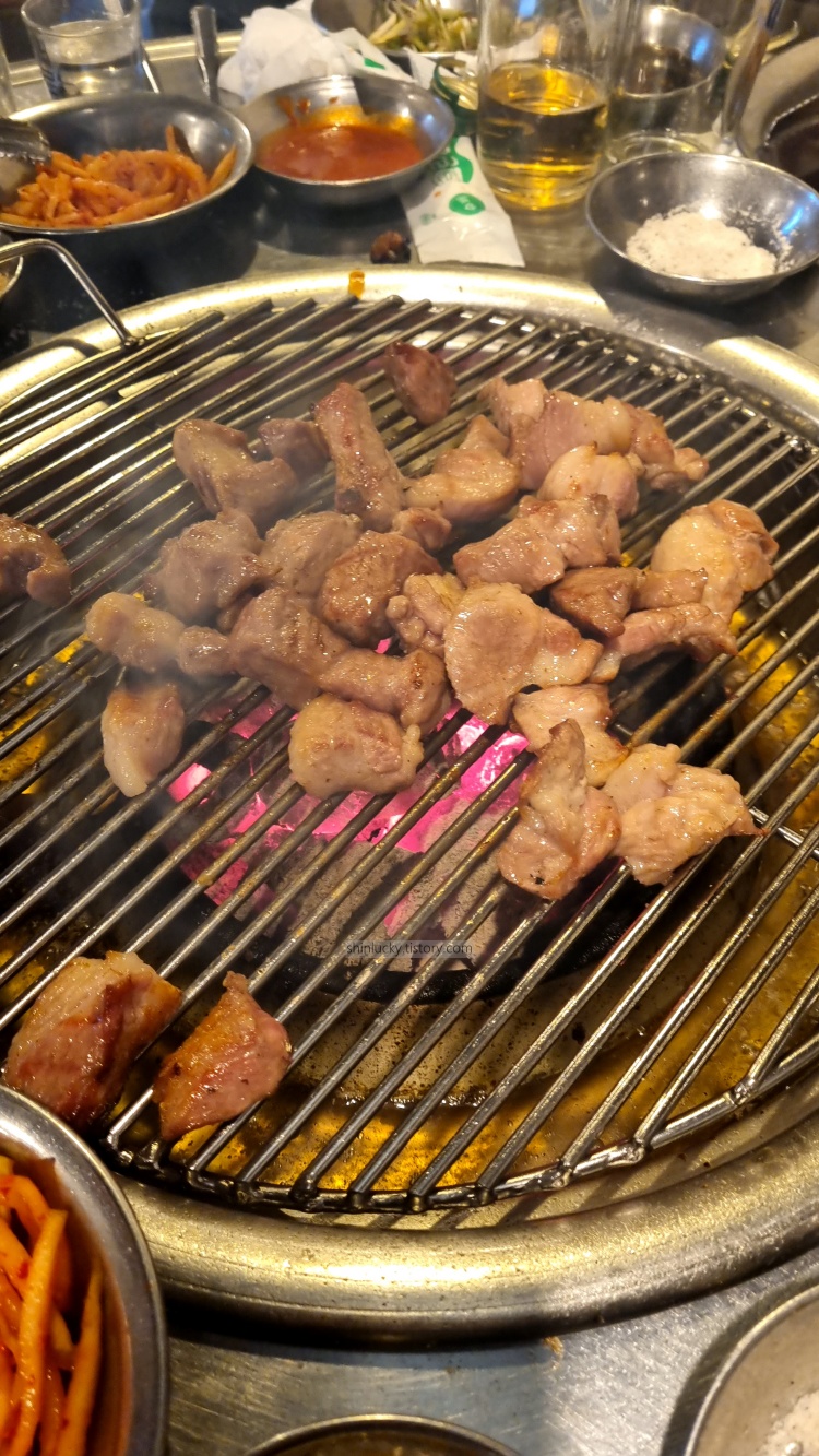 늦게 도착해서 돼지고기랑 껍데기만 올려서 좀 구워먹으며 추억팔이 하다가 왔습니다.