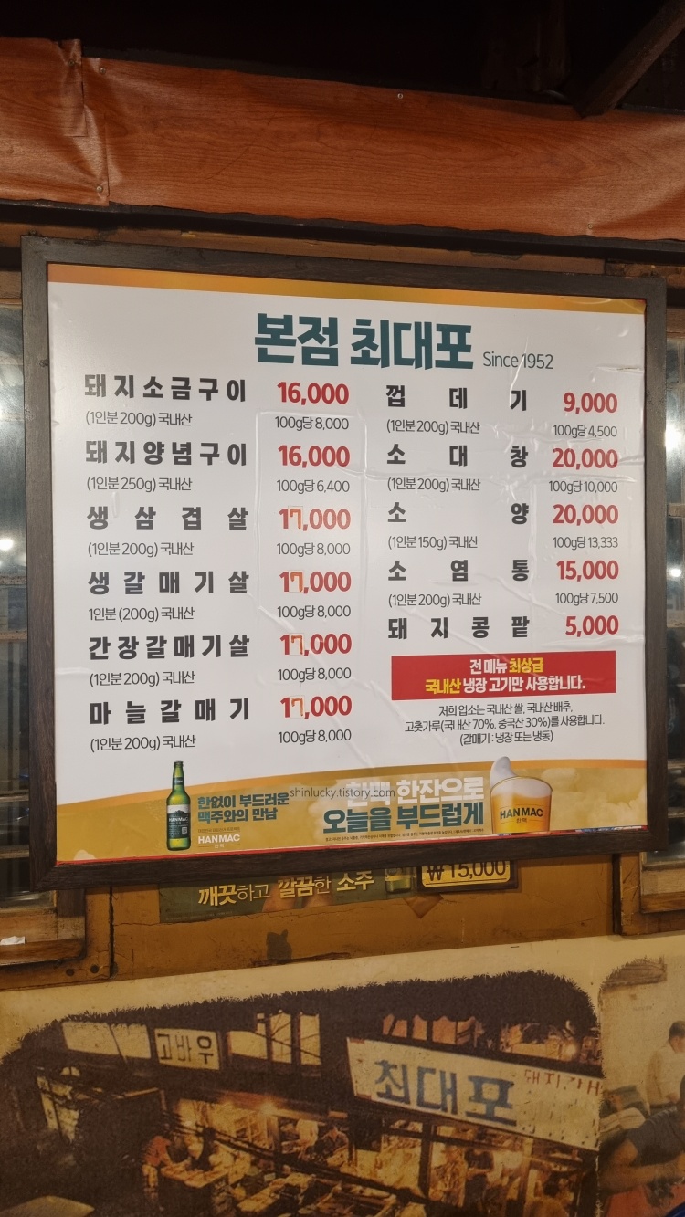 본점 최대포라는 곳을 방문! 1952년부터라고 나온 꽤 오래된 집.