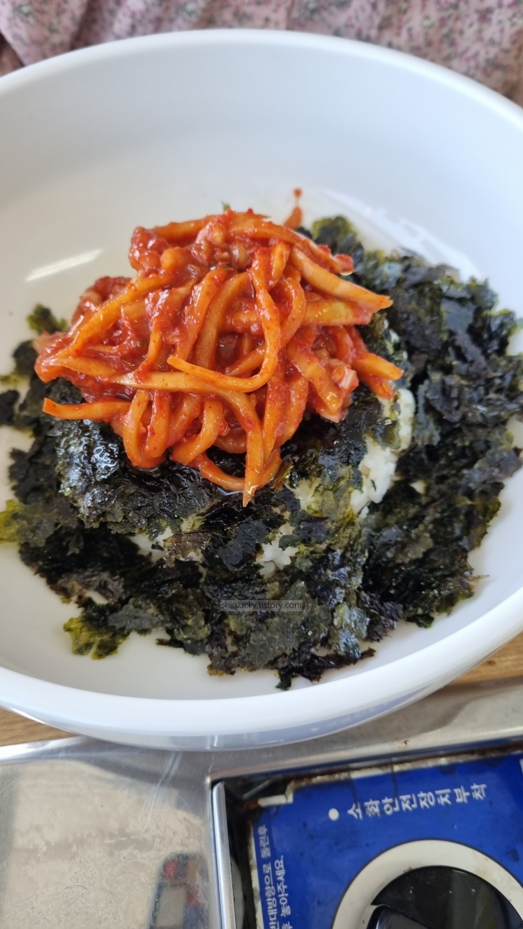밥위에 김이랑 무채가 올라가서 비벼먹는건데,
