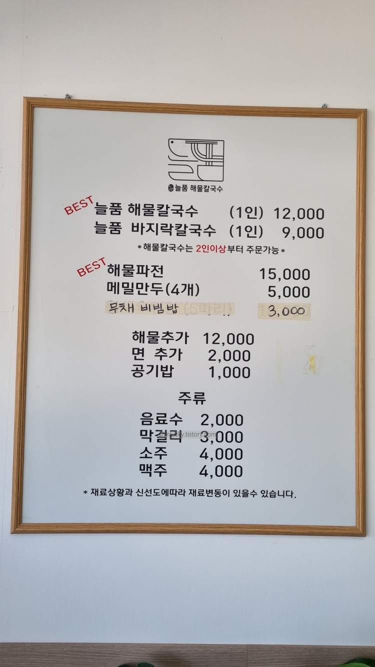 해물칼국수는 1인 12,000원에 뭐 무난한 가격.