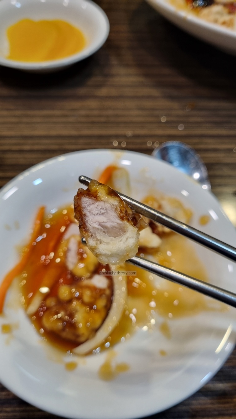 탕수육도 고기 겁나 두툼하고, 깐풍새우도 바삭하고, 유산슬도 맛있더라구요.