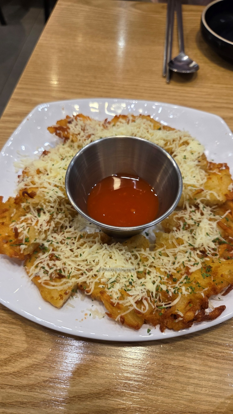 눈꽃감자채전은 사실 감자채튀김전 칠리소스에 찍어먹는 맛. 요건 젊은이들이나 아이들이 좋아할만하겠더라구요~