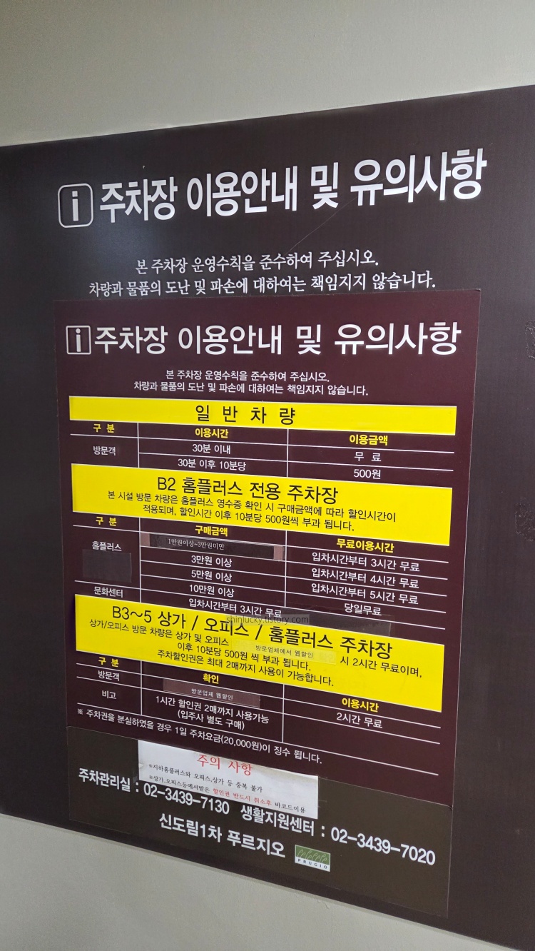근데 주차 안내 주의사항을 보면 상가와 홈플러스 중복 주차지원 불가!